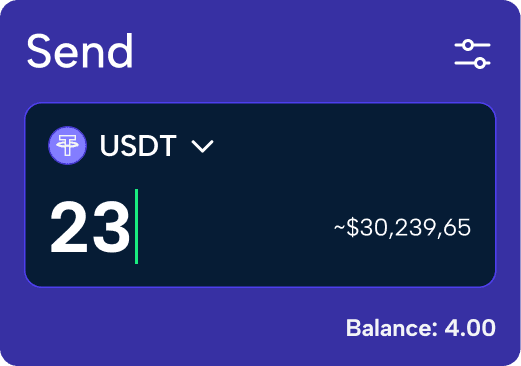 Send and receive USDT or other assets directly between wallets and exchanges - instantly, securely, and without limits.