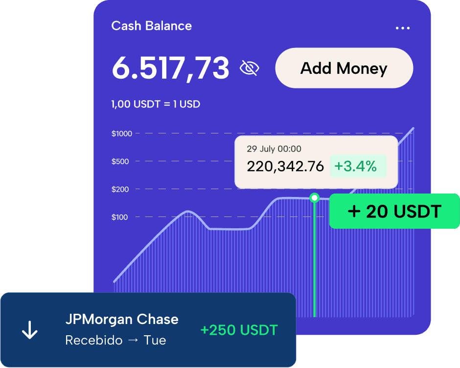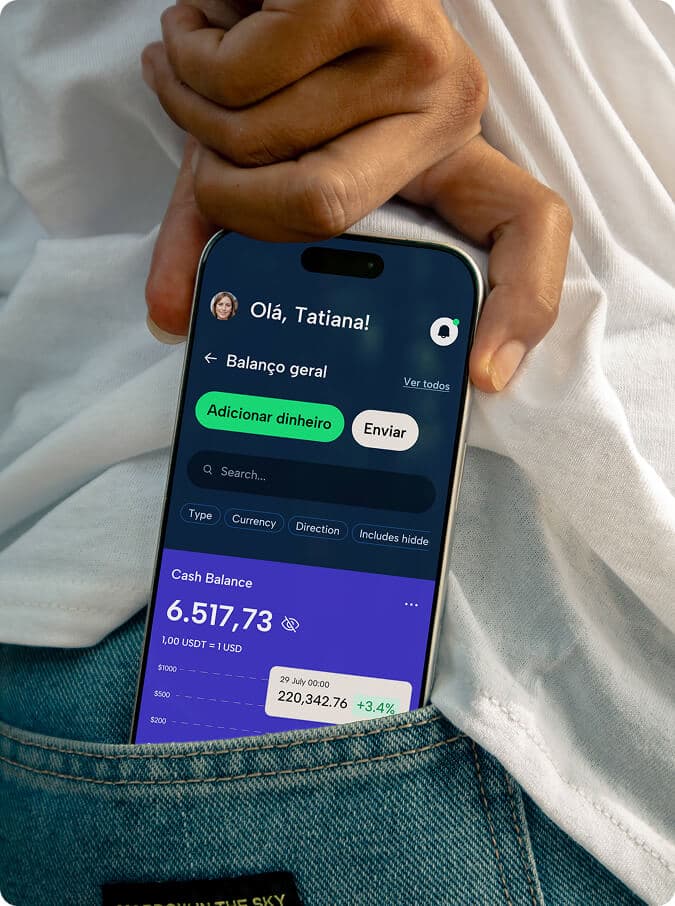Add BRL, USD, or crypto to your Ruvo wallet - instantly converted to USDT behind the scenes